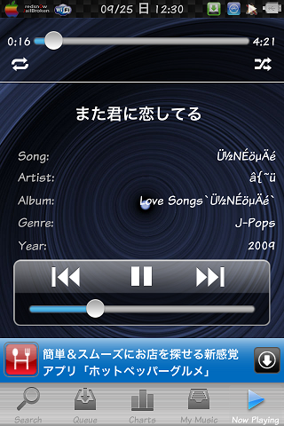 Now Playing~再生中の曲を表示します。音量や早送りなど・・・