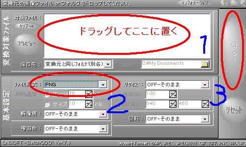 そこで簡単にpngに変換できるソフトがバッチグーなのです。