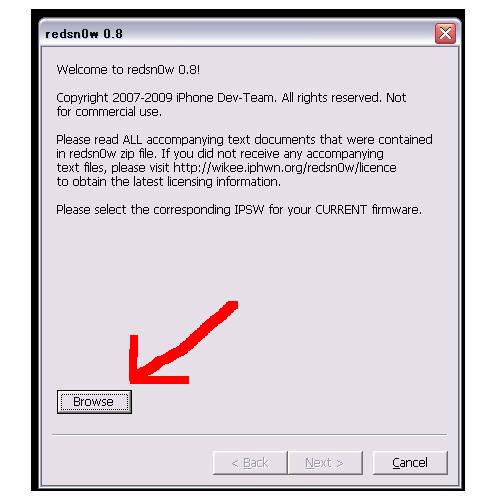 "Browse"をクリックし、jailbreakしたいOSファイルを指定してやる。