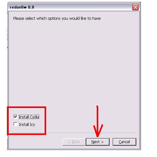 インストールする”Install Cydia”と”Install Icy”を選択する。