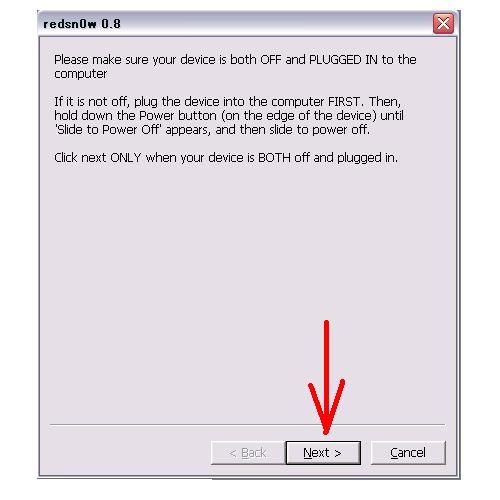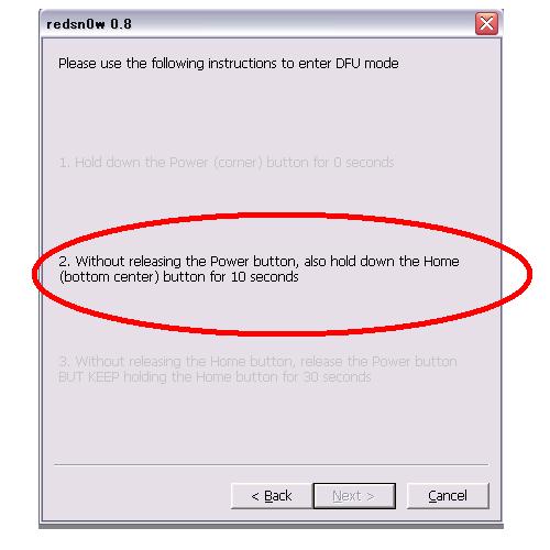 ipod,iphoneに反応が無く、redsn0wからエラーがでたらやり直しです。