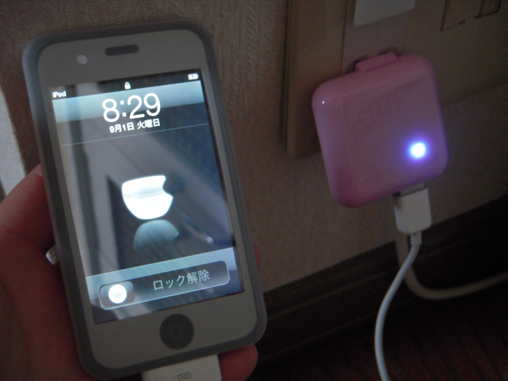 充電器をスピーカと私。